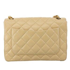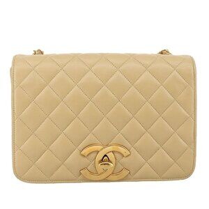 CHANEL Matelasse Chain Shoulder Bag Lamb Skin Beige Gold CC Auth