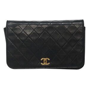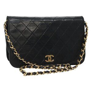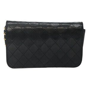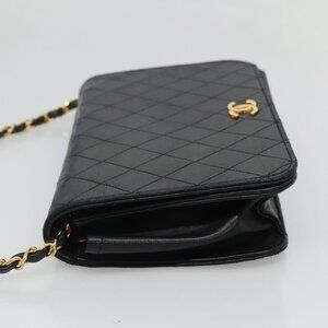 CHANEL Matelasse Chain Shoulder Bag Lamb Skin Black Gold