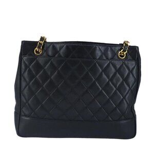 CHANEL Matelasse Chain Shoulder Bag Lamb Skin Black Gold