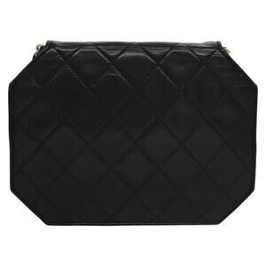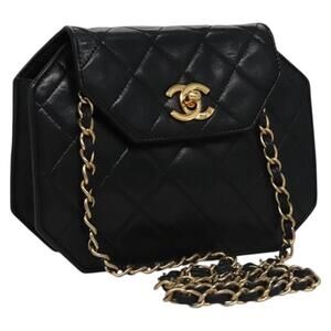 CHANEL Matelasse Chain Shoulder Bag Lamb Skin Black Gold CC