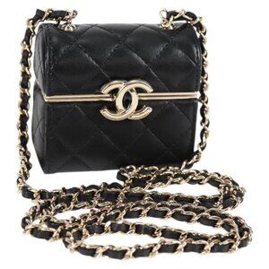 CHANEL Matelasse Chain Shoulder Bag Lamb Skin Black Gold CC Auth 127743SM