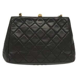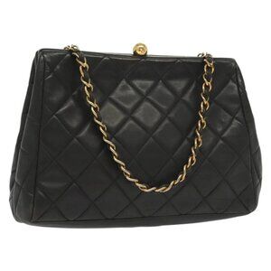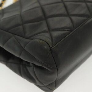 CHANEL Matelasse Chain Shoulder Bag Lamb Skin Black Gold CC Auth 139414