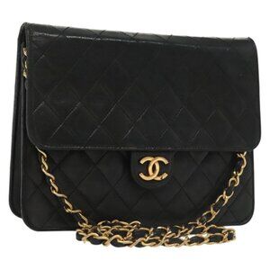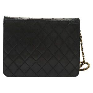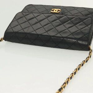 CHANEL Matelasse Chain Shoulder Bag Lamb Skin Black Gold CC Auth