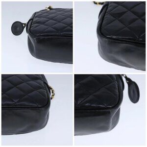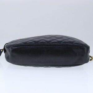 CHANEL Matelasse Chain Shoulder Bag Lamb Skin Black Gold CC Auth
