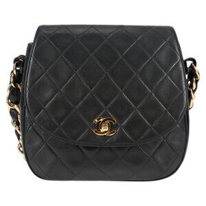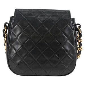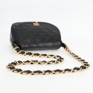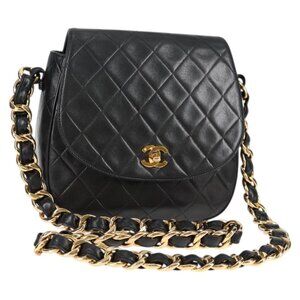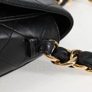 CHANEL Matelasse Chain Shoulder Bag Lamb Skin Black Gold CC Auth