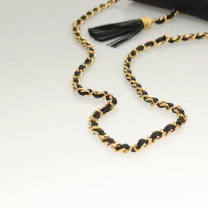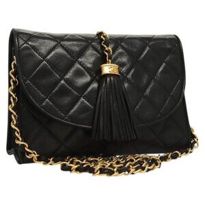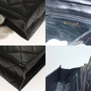 CHANEL Matelasse Chain Shoulder Bag Lamb Skin Black Gold CC Auth BA3125