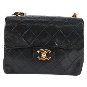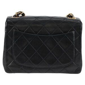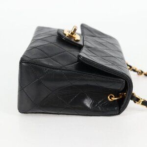 CHANEL Matelasse Chain Shoulder Bag Lamb Skin Black Gold CC Auth PP682V