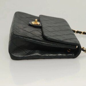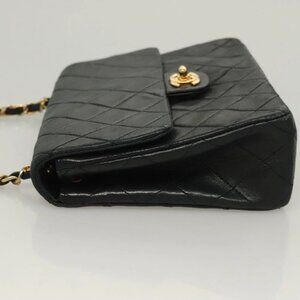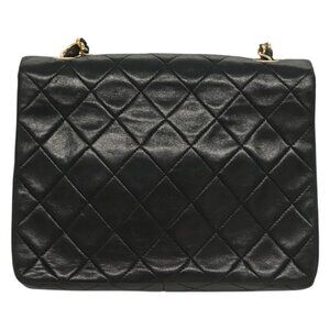 CHANEL Matelasse Chain Shoulder Bag Lamb Skin Black Gold CC Auth PP771