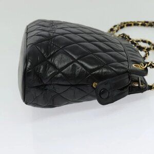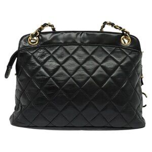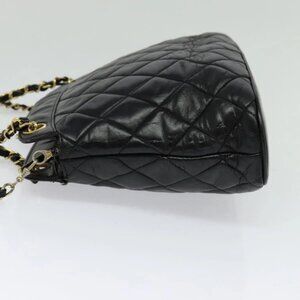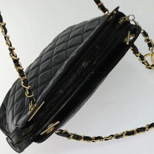 CHANEL Matelasse Chain Shoulder Bag Lamb Skin Black Gold CC Auth bs26776