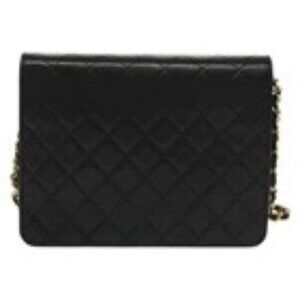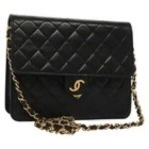 CHANEL Matelasse Chain Shoulder Bag Lamb Skin Black Gold CC Auth fm4823