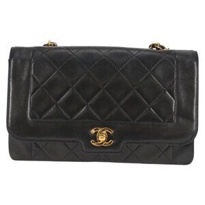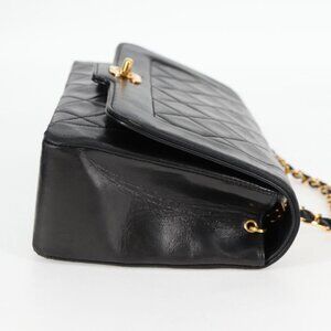 CHANEL Matelasse Chain Shoulder Bag Lamb Skin Black Gold CC Auth kk453A