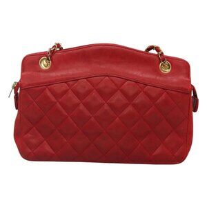 CHANEL Matelasse Chain Shoulder Bag Lamb Skin Gold Red CC Auth