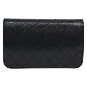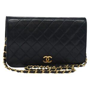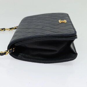 CHANEL Matelasse Chain Shoulder Bag Lamb Skin Navy Gold CC Auth 134020