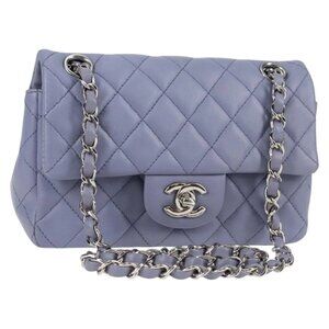 CHANEL Matelasse Chain Shoulder Bag Lamb Skin Purple Silver CC Auth 132927V