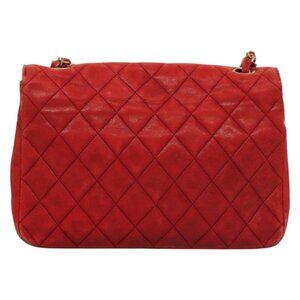 CHANEL Matelasse Chain Shoulder Bag Lamb Skin Red Gold CC Auth 136059