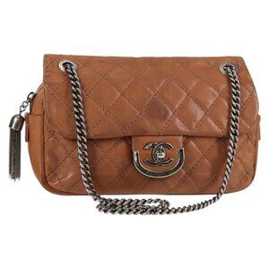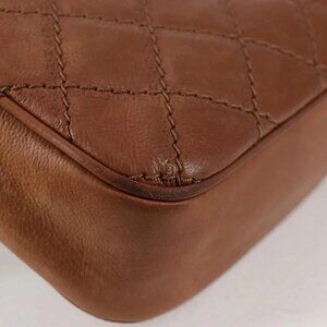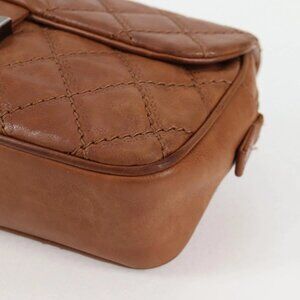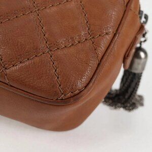 CHANEL Matelasse Chain Shoulder Bag Leather Brown Silver CC Auth 134215