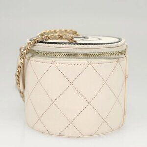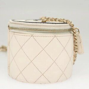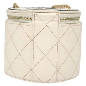 CHANEL Matelasse Chain Shoulder Bag Leather White Gold CC Auth 126060