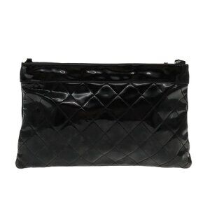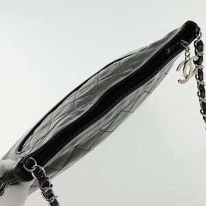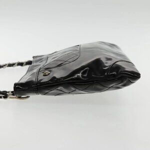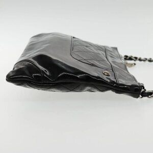 CHANEL Matelasse Chain Shoulder Bag Patent leather Black Silver CC Auth bs18654