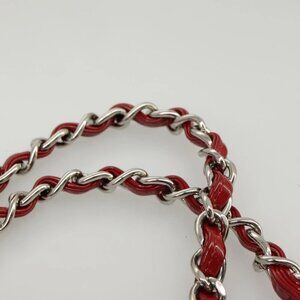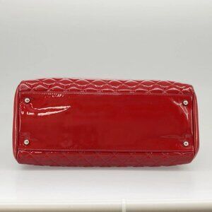 CHANEL Matelasse Chain Shoulder Bag Patent leather Red Silver CC Auth 102320A
