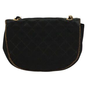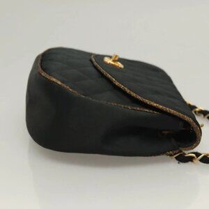 CHANEL Matelasse Chain Shoulder Bag Satin Black Gold CC Auth PP692