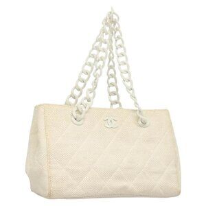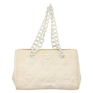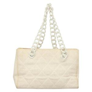 CHANEL Matelasse Chain Shoulder Bag Straw White CC