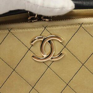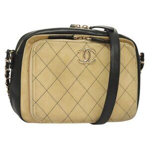 CHANEL Matelasse Chain Shoulder Bag Suede Ivory Gold CC Auth