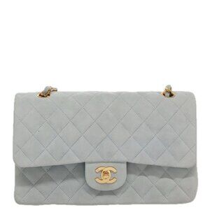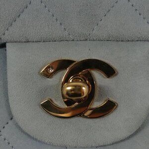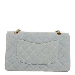 CHANEL Matelasse Chain Shoulder Bag Suede Light Blue Gold CC Auth