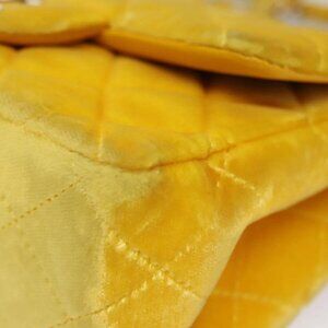 CHANEL Matelasse Chain Shoulder Bag Velor Yellow CC Auth 106423