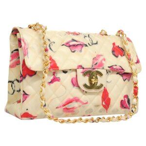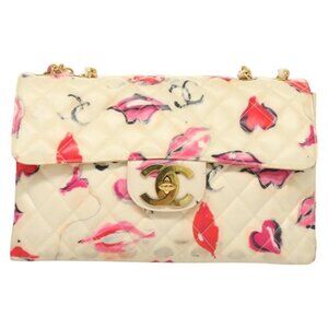 CHANEL Matelasse Chain Shoulder Bag Vinyl Coating White Gold CC Auth 1
