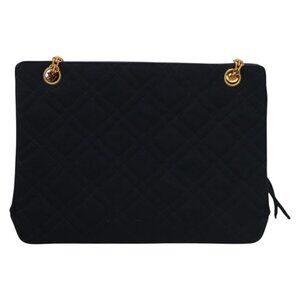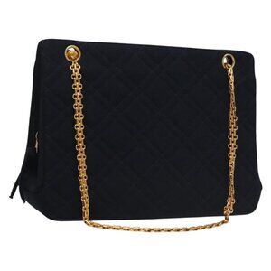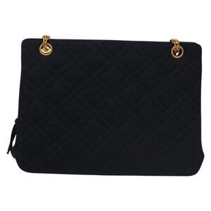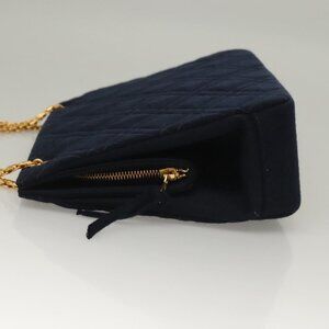CHANEL Matelasse Chain Shoulder Bag cotton Navy Gold CC Auth