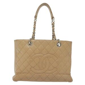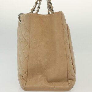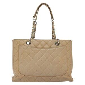 CHANEL Matelasse Chain Tote Bag Grained Calf Skin Beige Silver CC Auth bs28668