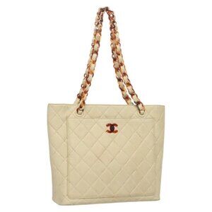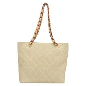 CHANEL Matelasse Chain Tote Bag Lamb Skin Beige CC Auth BD2075