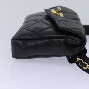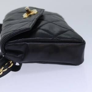 CHANEL Matelasse Chain Waist Bag Lamb Skin Black Gold CC