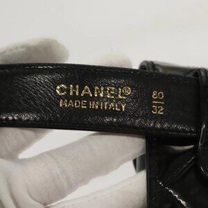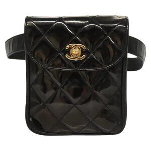 CHANEL Matelasse Chain Waist bag Enamel Black Gold CC Auth bs25637