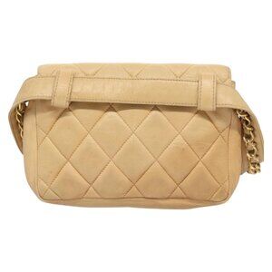 CHANEL Matelasse Chain Waist bag Lamb Skin Beige Gold CC Auth