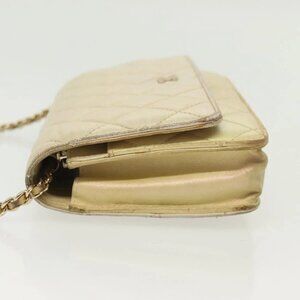 CHANEL Matelasse Chain Wallet Shoulder Bag Lamb Skin Gold Tone CC Auth 137