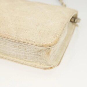 CHANEL Matelasse Chain Wallet Tweed White Silver CC Auth 138800