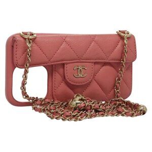 CHANEL Matelasse Chain iPhone Case Lamb Skin Pink CC Auth PP819