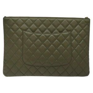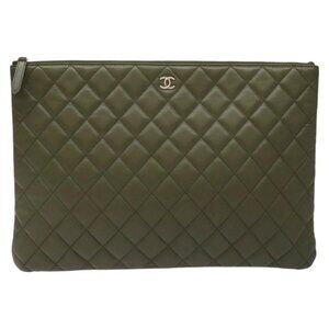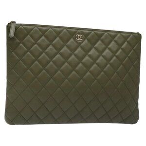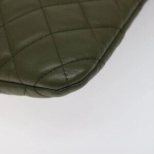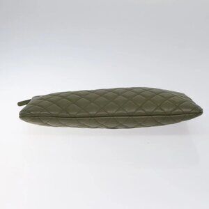 CHANEL Matelasse Clutch Bag Lamb Skin Green Gold CC Auth 126558M