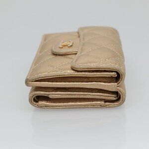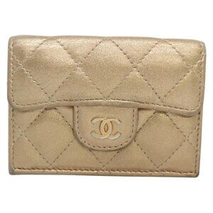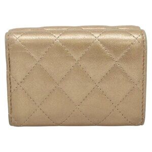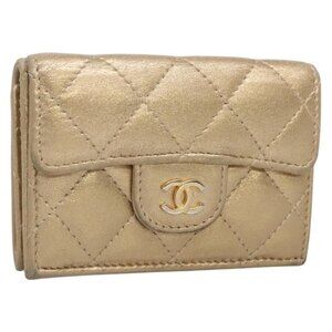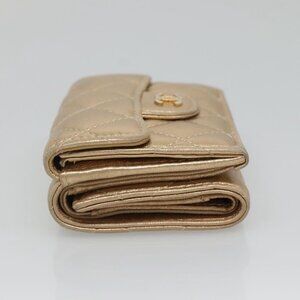 CHANEL Matelasse Compact Wallet Lamb Skin Gold CC Auth 136328