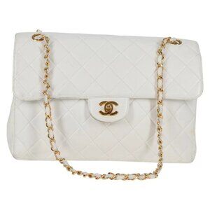 CHANEL Matelasse Double Face Chain Bag Lamb Skin White Gold CC Auth bs17533A