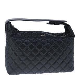 CHANEL Matelasse Hand Bag Caviar Skin Black CC