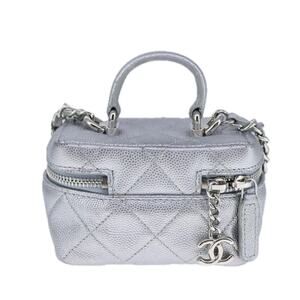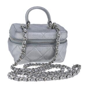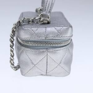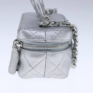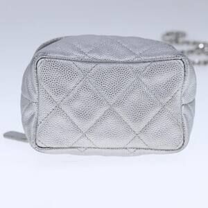 CHANEL Matelasse Hand Bag Caviar Skin Silver CC