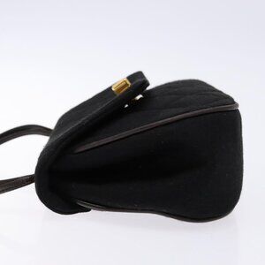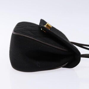 CHANEL Matelasse Hand Bag Cotton Black Gold CC Auth PP873
