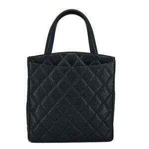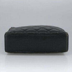 CHANEL Matelasse Hand Bag Grained Calf Skin Black CC Auth 101307A