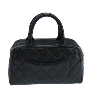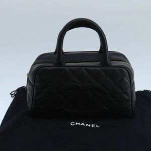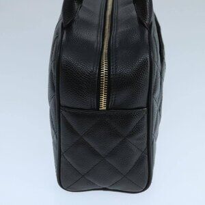CHANEL Matelasse Hand Bag Grained Calf Skin Black CC Auth