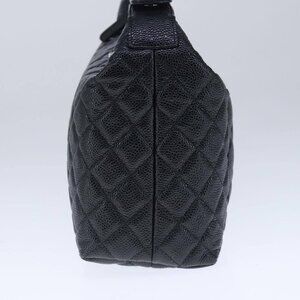 CHANEL Matelasse Hand Bag Grained Calf Skin Black CC Auth