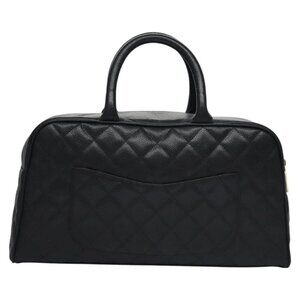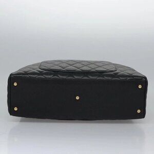 CHANEL Matelasse Hand Bag Grained Calf Skin Black Gold CC Auth BA451A