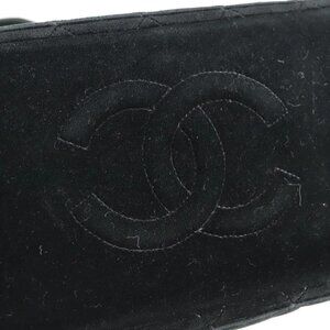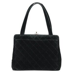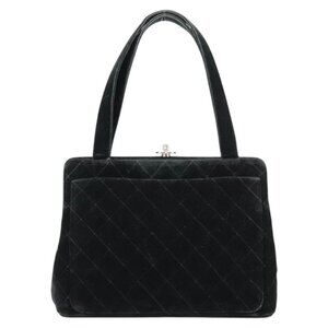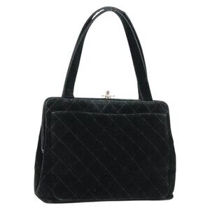 CHANEL Matelasse Hand Bag Suede Black Silver CC Auth