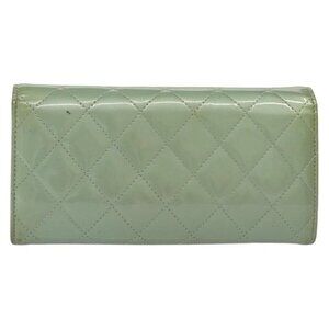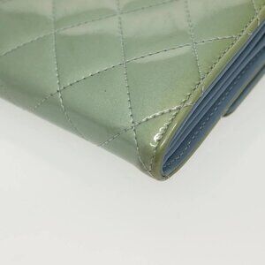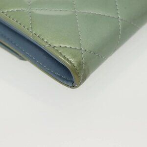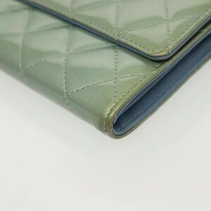 CHANEL Matelasse Long Wallet Enamel Green Silver CC Auth 138942